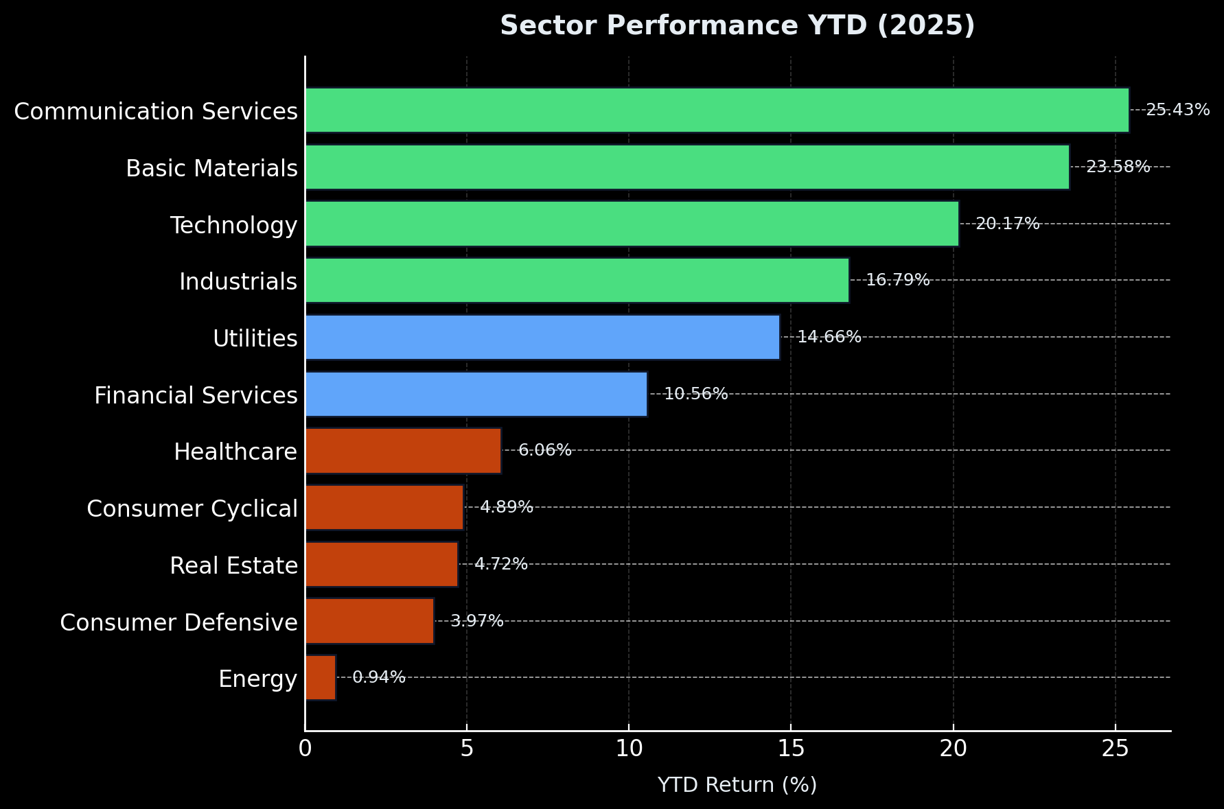 1. Communication Services (+25.43%) — The Comeback Story